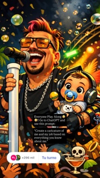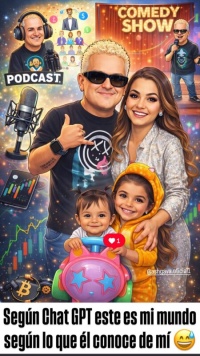 Además el comediante choche No perdí la oportunidad de unirme al tendencia acompañado de sus hijas y su esposa. En la imagen generada por la inteligencia artificial también se aprecia su faceta como comunicador, con referencias a su trabajo en radio y podcast.